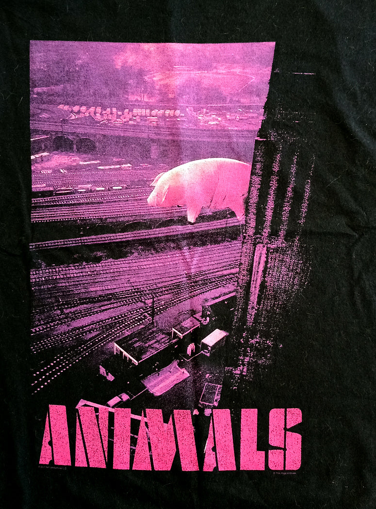 • Iconic Imagery: Features the memorable floating pig and industrial scene, symbols associated with Roger Waters and Pink Floyd’s “Animals” album.