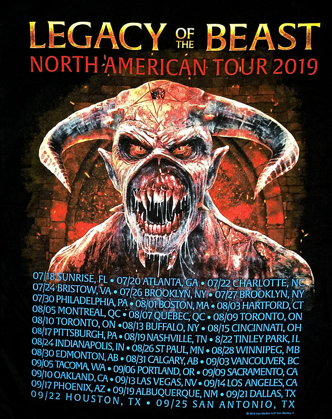Quality Imported Official IRON MAIDEN licensed MENS Classic Rock Band T Shirt featuring IRON MAIDEN " LEGACY OF THE BEAST " design motif. ROCK PIG - Wear Your Passion