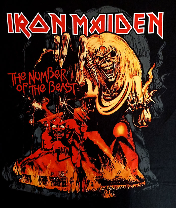 Quality Imported Official IRON MAIDEN licensed MENS Classic Rock Band T Shirt featuring IRON MAIDEN " NUMBER OF THE BEAST " design motif. ROCK PIG - Wear Your Passion