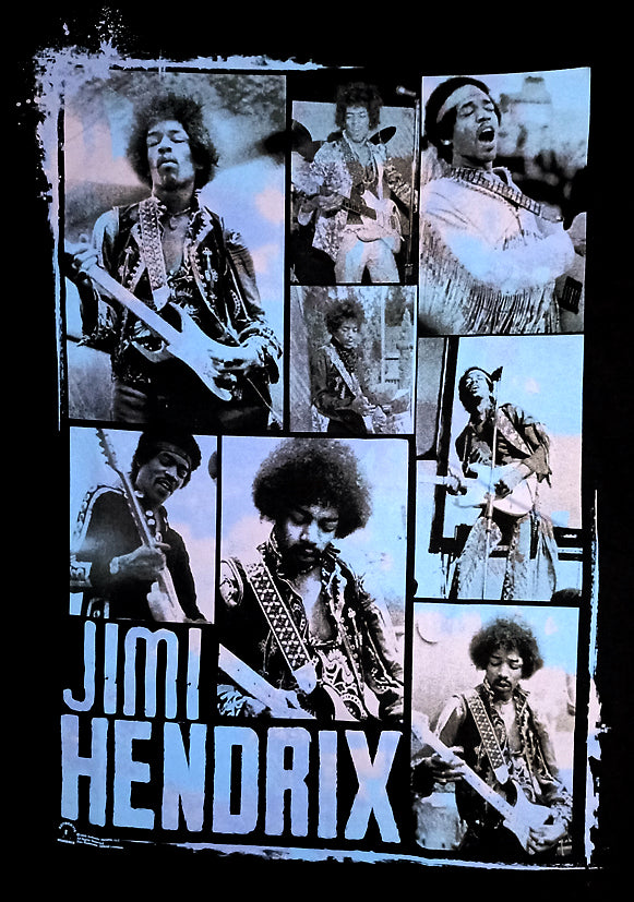 Quality Imported Official JIMI HENDRIX licensed MENS Classic Rock Band T Shirt featuring JIMMY HENDRIX "8 PHOTOS" design motif. ROCK PIG - Wear Your Passion